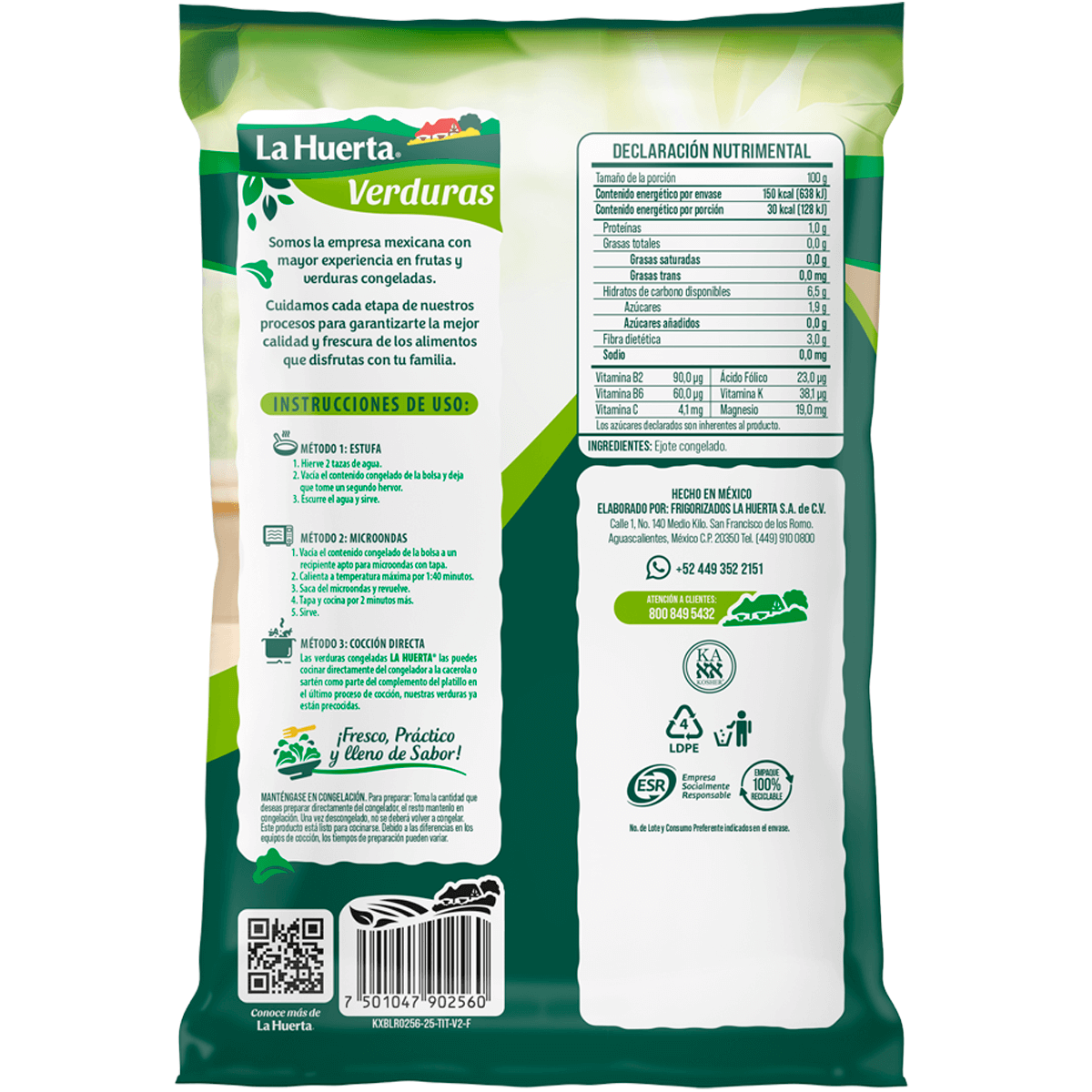Nuestros ejotes ya vienen listos para usar. Perfectos para salteados rápidos, ensaladas frescas o tus wraps favoritos. Son súper ricos, llenos de color y vitaminas C, K y A para mantenerte con energía y cuidar tu cuerpo mientras disfrutas cada bocado.