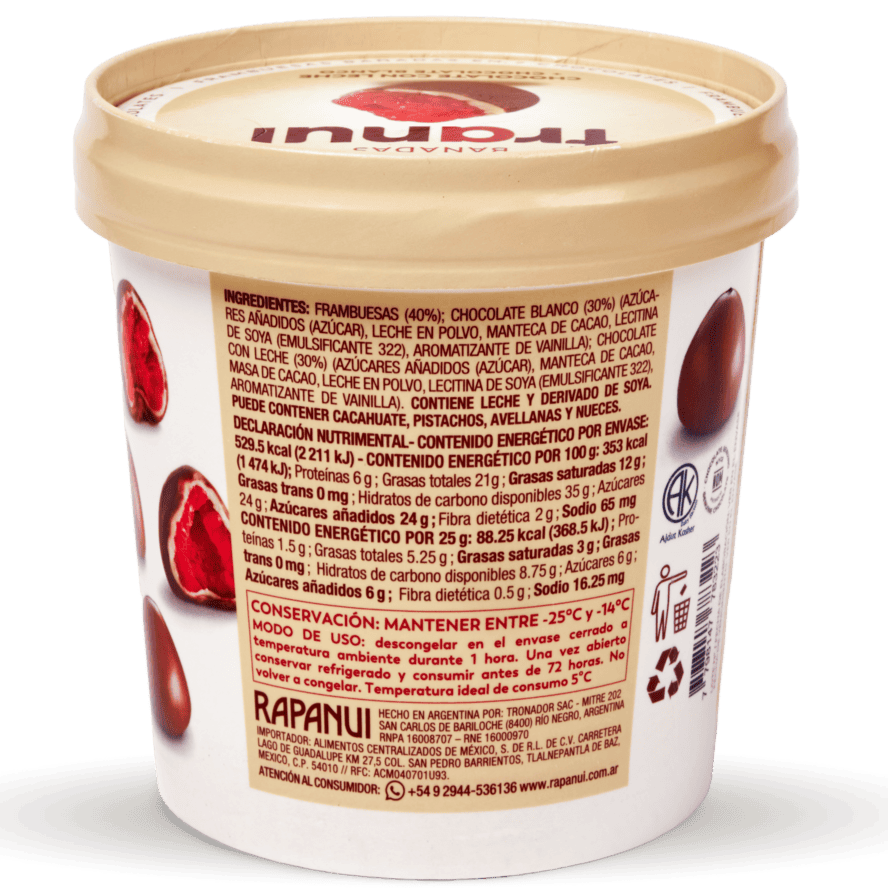 Frambuesas frescas cubiertas con una irresistible combinación de chocolate blanco y chocolate con leche. Cada bocado es una explosión de sabor que mezcla la acidez de la fruta con la dulzura del chocolate.