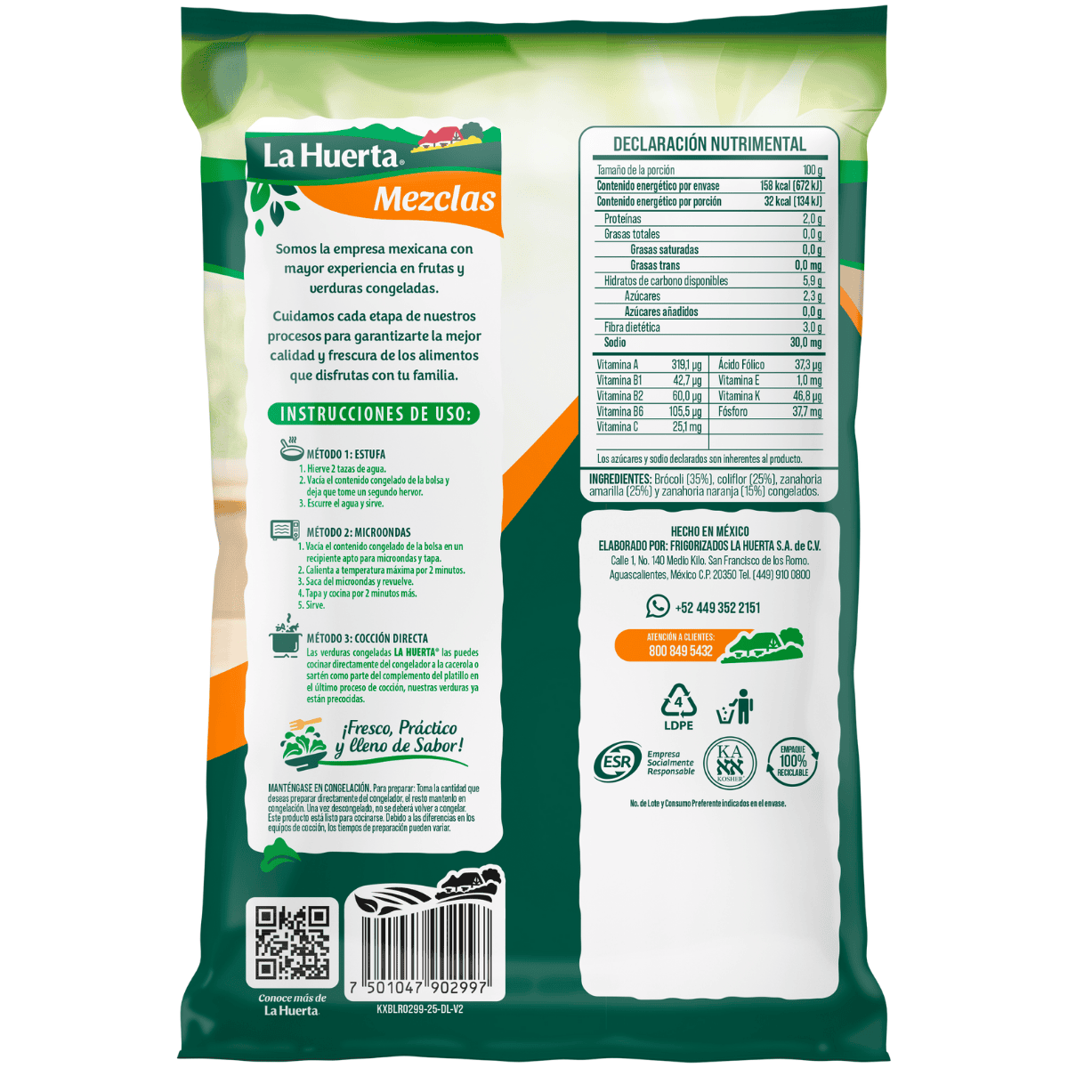 Nuestra mezcla de zanahoria amarilla y naranja, coliflor y brócoli está lista para darle vida a tus comidas. Llena de vitaminas A, B y C, ayuda a mantener uñas y cabello fuertes, impulsa tu energía y cuida tu bienestar de manera natural.